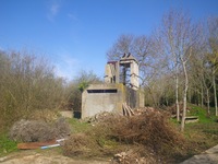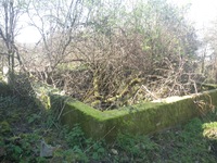 Petit ouvrage en béton, à usage indéterminé et recouvert de végétation.