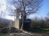 Soute à munitions des canons de la batterie. Pour plus de sécurité, les soutes ont été réparties loin du reste des éléments. Actuellement, la soute est dans un verger, en grande partie enterrée.
