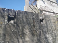 Voie ferrée pris dans une plate-forme de béton. L'écartement de 50 cm laisse supposer qu'elle était prévue pour les wagonnets remontant de la plage au concasseur. Actuellement, le propriétaire se sert de la plate-forme comme décharge à déchets verts.
