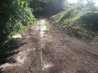 Route bétonnée partant de la route communale et se dirigeant vers les ouvrages. Elle devait servir au passage des transports de matériaux et de munitions. En grande partie recouverte par la terre, elle est révélée à certains endroits par le passage des engins agricoles.