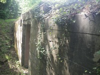 Quai de déchargement ou de chargement positionné juste à côté du concasseur. Aujourd'hui, une grande partie se trouve sous la végétation.