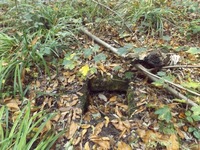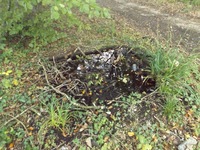 A proximité de l'abri atelier, deux cuves étaient systématiquement présentes. Elles assuraient le stockage de l'eau nécessaire au rinçage du matériel. Cette cuve de forme rectangulaire est toujours visible et demeure en bon état. Elle est en revanche en grande partie comblée.