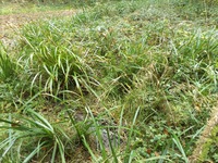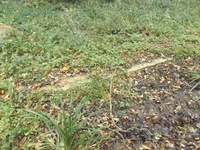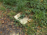 Dalle en béton armé installée en bordure de la piste bétonnée. Cet élément en partie recouvert par la végétation n'a pas été identifié clairement.