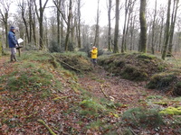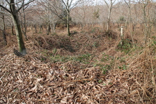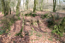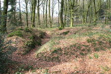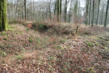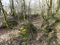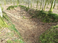 Tranchée peu profonde reliant le chemin du lieu-dit la Clairière et la route D81. Ce genre d’ouvrages permettait aux Allemands de se déplacer dans le site en restant à couvert.