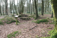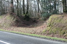 Une vingtaine de creux sont alignés en épis dans les talus tout au long des axes routiers du site. Ils correspondent à des garages qui étaient étayés de bois et couverts pour protéger les véhicules et les camoufler. Certains ont été énormément défigurés lors des opérations de débardage. Celui-ci se trouve long de la D299.
