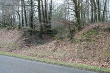 Une vingtaine de creux sont alignés en épis dans les talus tout au long des axes routiers du site. Ils correspondent à des garages qui étaient étayés de bois et couverts pour protéger les véhicules et les camoufler. Certains ont été énormément défigurés lors des opérations de débardage. Celui-ci se trouve long de la D300.