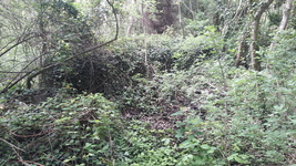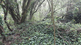 Tranchée reliant les différents ouvrages du site et la première villa à l'est. L'élément a aujourd'hui complètement disparu. Cependant, il est visible sur la campagne photographique de 1947.