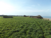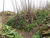 Vestiges du réseau de tranchées encore visibles sur le site du Wn 71. Ce réseau desservait en 1944 les différents éléments qui composaient le site. La remise en culture des terrain a fait disparaître la grande majorité des tranchées mais certains tronçons sont encore visibles.