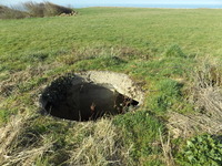 Trou de combat creusé dans le sol le long de la crête dominant la plage de Vierville-sur-Mer. Ce trou faisait office de poste de surveillance mais également de poste de tir. Avec l'érosion, celui-ci s'est en partie comblé mais reste toujours bien visible.