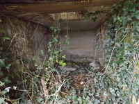 Petite soute réalisée en béton armé et servant au stockage de munitions. Cet élément se situe aujourd'hui sur une plate-forme de tir pour canon. Il est donc logique de penser que la soute a été déplacée par l'exploitant du champ. Il est en revanche impossible de savoir d'où elle provient exactement. Aujourd'hui, cet élément est toujours visible. Il est recouvert par la végétation.