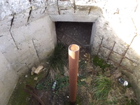 Petit abri pour citerne à eau construit en béton armé. Cet élément se situe à proximité immédiate d'un abri qui faisait office de cuisine. La citerne offrait donc une autonomie relative en eau potable. L'abri se compose d'un unique pièce aux dimensions réduites dans laquelle se trouvait la citerne. Une ouverture carrée aménagée dans la dalle de couverture de l'abri permettait le remplissage de la citerne. A l'heure actuelle, cet abri est totalement remblayé et seule la dalle de couverture est visible.