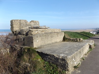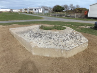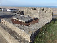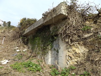 Élément indéterminé construit en béton armé à partir d'un coffrage en bois. Ce fragment de béton n'a pas été clairement identifié et est peut être le vestige d'un élément détruit. Actuellement il se trouve dans un herbage au bord du versant du surplombe la plage.