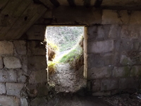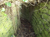 Tranchée rectiligne creusée dans le sol. Cette tranchée desservait la casemate à créneaux qui se trouve juste à côté. La tranchée permettait ainsi de relier le haut et le bas de la colline sans s'exposer. Aujourd'hui, la tranchée est en partie comblée mais reste bien visible.