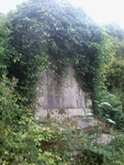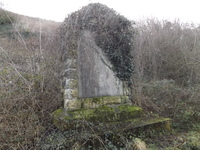 Première stèle érigée à la fin de l'année 1944 par des prisonniers de guerre allemands en l'honneur des troupes de la 6th Engineer Special Brigade. Ce monument arborait l'emblème des sapeurs américains ainsi que les blasons des différentes unités qui composaient la 6ème Brigade. Suite à des actes de vandalisme, la stèle fut restaurée à plusieurs reprise. C'est finalement la nature qui a eu raison de ce monument. Suite à des mouvements de terrain, le site est devenu dangereux et la stèle a été abandonnée au profit d'un autre monument construit plus à l'ouest. Désormais, la stèle est toujours visible mais presque entièrement recouverte par une épaisse végétation qui a depuis longtemps repris ses droits.