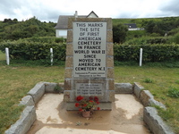 Vierville-sur-Mer – un cimetière « éphémère » De nombreux endroits ont été utilisés par les Alliés pour enterrer leurs morts avant que ceux-ci ne soient exhumés, regroupés et enterrés dans un cimetière dit provisoire. Par exemple, les parachutistes américains ont enterré leurs camarades tombés au combat dans des champs entre Utah Beach et Sainte-Mère-Eglise. Les corps ont ensuite été relevés et transportés par les services des sépultures jusqu’aux trois cimetières ouverts dans ce secteur. Les Allemands, quant à eux, ont enterré leurs morts dans divers endroits sur les arrières du front de Normandie ou encore ont laissé cette corvée à la charge de leurs ennemis. Inventorier tous ces sites se révèlent tout simplement impossible mais nous avons fait une exception pour le cimetière éphémère de Vierville-sur-Mer en raison de son caractère éminemment symbolique. Ce fut en effet le premier cimetière temporaire créé par l’armée américaine sur le sol français. Bizarrement, il fut tout d’abord appelé « Saint Laurent n°2 » pendant le peu de temps qu’a duré son existence. Avant le Débarquement, deux sites avaient été choisis pour enterrer les personnels du Vth US Corps tués au combat. Mais ces emplacements se trouvaient beaucoup trop loin de la côte et toujours sous contrôle des Allemands pour que ces plans puissent être exécutés. L’assaut sur Omaha Beach ayant tourné au carnage, une décision rapide s’imposait. En effet, dans les jours qui suivirent le Jour J, un afflux incessant de troupes de renfort devaient débarquer dans ce secteur. Il est certain que la présence de cadavres exposés aux éléments et au mouches eut été catastrophique pour leur moral. C’est à compter du 7 juin 1944 que les premiers morts furent inhumés en bord de plage, entre Vierville-sur-Mer et saint-Laurent-sur-Mer. De longues tranchées furent creusées par un bulldozer et les corps furent pour la plupart enveloppés dans de simples linceuls. Les unités en charge de l'établissement de cette nécropole appartenaient au 607th et 606th Grave Registration Services, assistées dans ces circonstances par des soldats du Génie. Le 12 juillet 1944, les 458 corps inhumés à cet endroit furent relevés pour être à nouveau enterrés plus à l’est sur le plateau, dans le cimetière appelé « Saint Laurent n°1 », qui avait été ouvert le 9 juin 1944. Dans les faits, cette solution d’urgence n’avait pas empêché à court terme l’effet démoralisateur engendré par la vue de ces rangées de pieux envahies par des myriades de mouches. De ce site éphémère, il ne reste plus rien de nos jours. Seul un monument dédié aux soldats alliés morts sur cette plage devenue tristement célèbre sous le surnom de « bloody Omaha » rappelle son existence.