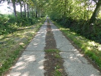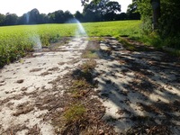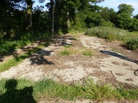 Les installations "légères" de lancement de V1 conservent parfois l'embase et les plots en béton qui permettaient de fixer la rampe de lancement en acier. Cet ouvrage est en grande partie recouvert par la terre et par l'herbe et il est impossible de s'assurer de son état général de conservation. Il semble que cette rampe n'ait jamais été terminée.