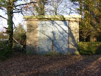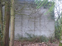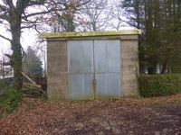Garage en béton armé pouvant abriter un V1 sur son chariot. Cet ouvrage est en excellent état général de conservation. Il a été camouflé avec un dessein spécial imitant des pans de bois. Ce camouflage a presque totalement disparu de nos jours.