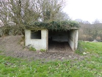 Abri à proximité d'une ferme toute proche du site que les Allemands avaient réquisitionnée. Il est probable qu'il s'agissait d'un abri construit en dur en cas d'attaque aérienne de la Batterie. L'abri semble en excellent état mais il est partiellement inondé.