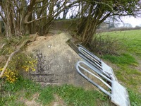 Tobrouk Bf.58c pour mitrailleuse. Un acès souterrain à ce tobrouk passe sous la route. Il est cependant obstrué de nos jours.
