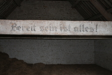 Deux grandes maximes en allemand en lettres gothiques sur les poutres d'une grange. Les dimensions moyennes de ces deux fresques sont d'environ 40 par 400 cm. Elles se trouvent dans un bon état de conservation et sont encore visibles aujourd’hui.