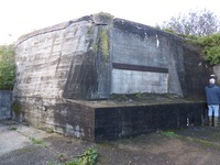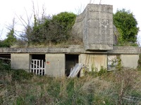 Leitstand de type M178 qui était en construction à la Libération. Ce poste de direction de tir jouxte un baraquement en béton pour le cantonnement de la troupe. Un projet d'habitation a été entrepris dans ces deux bâtiments qui n'en font qu'un car ils sont collés l'un à l'autre. Ce changement de destination n'a jamais été mené à son terme. L'ouvrage a quelque peu souffert de ces travaux d'aménagement mais il demeure en grande partie intact. On peut donc dire qu'il est encore bien préservé.