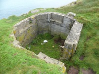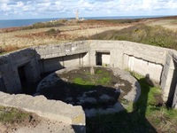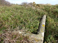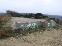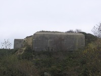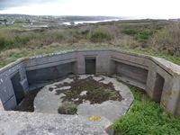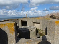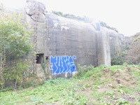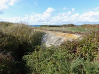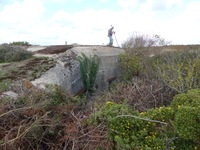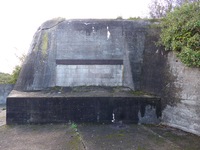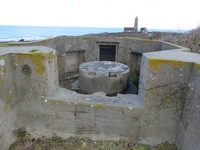 Poste d'observation qui offrait un large angle de vision sur la côte. Il apparaît que cet ouvrage n'est pas standardisé. De la pierre a été ajoutée au béton armé pour tout à la fois le solidifier et le camoufler.