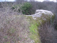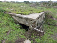 Tobrouk Bf.58c pour mitrailleuse. L'ouvrage est partiellement recouvert par la végétation mais son son état de conservation semble bon. A noter que ce Tobrouk est doté d'une entrée particulière (une sorte de toit) qui protégeait l'accès pour ses occupants. Tous les Tobrouk présents sur ce site ont fait l'objet de cette modification extérieure.