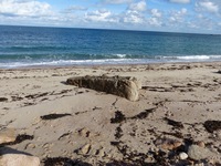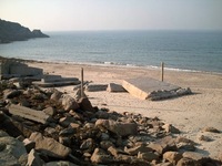 Cette rampe d'accès construite essentiellement avec des pierres et du ciment est désormais scindée en plusieurs blocs qui gisent sur la plage.