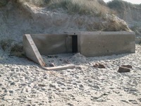Sonderkonstruktion, autrement dit un ouvrage qui échappe à la standardisation et qui est construit en tenant compte de sa finalité et de la spécificité des lieux. Cet ouvrage apparaît très rarement au grand jour. Pendant de longues années, il peut rester enfoui sous la dune de la plage de la Mondrée. Au regard des photos qui ont été prises, il semble en excellent état de conservation.
