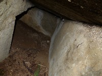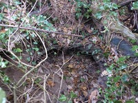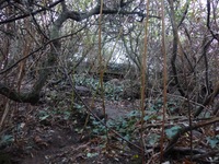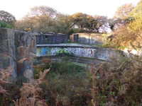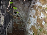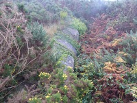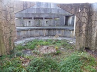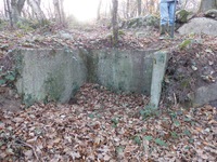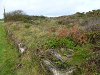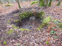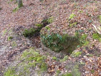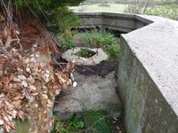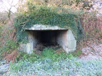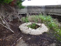 Encuvement pour pièce de Flak de 20 mm. Cet ouvrage est complètement recouvert par la végétation. Il est donc impossible d'en connaître l'état général. Il semble cependant que l'entrée a été endommagée.