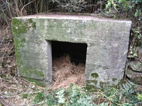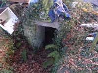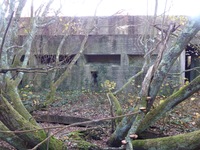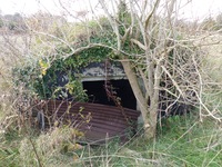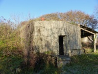 Petit abri bétonné pour le personnel ou pour entreposer du matériel, voire des munitions. L'ouvrage est recouvert par la végétation et on en distingue plus guère que le toit.