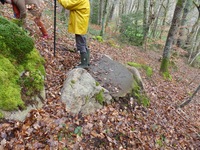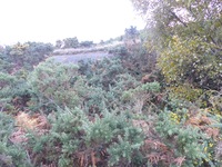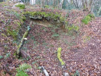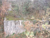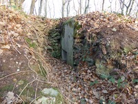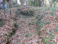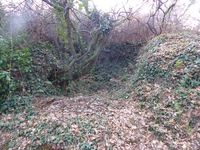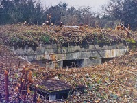 Tobrouk Bf.58c pour mitrailleuse. L'ouvrage est recouvert par la végétation et il est difficile d'apprécier son état de conservation. A noter que ce Tobrouk est doté d'une entrée particulière (une sorte de toit) qui protégeait l'accès pour ses occupants. Tous les Tobrouk présents sur ce site ont fait l'objet de cette modification extérieure.