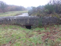 Barrage constitué à l'origine par une porte belge ( élément Cointet ) enserrée entre deux plots en béton ( Panzersperre )