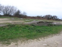 Encuvement pour pièce de 7,5 cm Flak M.36 d'origine française. Il y aurait eu six encuvements semblables disposés les uns à côté des autres, mais seulement trois ont été retrouvés. Cet ouvrage est recouvert par une petite pièce d'eau. On entrevoit encore une soute. Son état général est difficile à apprécier.