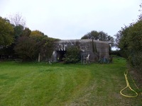 Soute à munitions sur laquelle une maison a été construite. Cet ouvrage est situé à l'arrière d'une casemate de tir. Il est impossible d'apprécier son état de conservation.