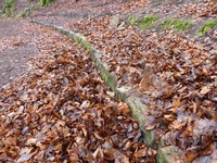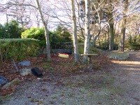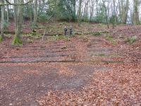 Terrain de tennis réalisé par les Allemands pendant l'Occupation. Ces infrastructures sportives témoignent de la volonté des autorités allemandes d'Occupation de fournir en équipements sportifs les troupes stationnées dans la région. Il ne s'agirait pas de l'unique terrain de tennis réalisé à cette époque par les Allemands. On discerne encore nettement les lignes du terrain. La question est de savoir si ce court était uniquement destiné aux loisirs des officiers dans la mesure où se sport était plutôt réservé à une élite à cette époque. On ignore qui a réellement commandité la construction de ce court mais on peut imaginer que des rencontres entre officiers des trois armes s'y déroulaient.