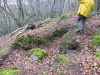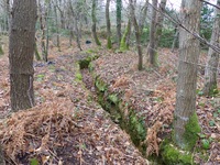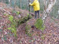 Cette position allemande établie sur les hauteurs de la vallée des Moulins, à proximité du clocher du Mont Varin de Fermanville, aurait été codée Wn.405. Si le maître d'ouvrage est certainement l'armée de terre, le maître d'oeuvre n'est autre que l'Organisation Todt. Cette information très intéressante ainsi que la date de construction (1943) apparaissent sur à une inscription apposée sur l'un des ouvrages. Il paraît évident que les éléments défensifs établis à cet endroit avaient pour finalité d'interdire l'accès Est de la Vallée des Moulins. De là, on peut considérer qu'il s'agissait d'une première ligne de défenses de la batterie Hamburg située plus à l'Ouest. Construite à flanc de coteaux, cette position s'articule autour de quatre ouvrages : un abri, deux sections de murs servant de piliers pour soutenir deux petits ponts (disparus), et enfin un emplacement de tir remarquablement positionné. Si le site nous apparaît exceptionnel, c'est avant tout parce qu'il offre un exemple d'une position isolée répondant à un objectif précis, à savoir la mise en batterie d'une pièce d'artillerie légère, et dont tous les éléments concourent à la réalisation de cet objectif. A noter que ce site devait compter une série d'abris ou de soutes construits avec des rangées de rondins superposées en guise de toit. En atteste la présence encore bien visible de nos jours d'excavations creusées dans la terre. Il est aussi envisageable que, si les Allemands en avaient eu le temps, ces emplacements auraient accueilli à terme des petits ouvrages bétonnés. En juin 1944, le site offrait un large point de vue sur les alentours. Il est désormais recouvert par les arbres de la forêt.