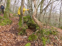 Des trous de combat (trous d'homme) ont été creusés par les Allemands dans le secteur est de la batterie Hamburg. Ils sont logiquement situés sur les hauteurs d'un versant du viaduc de la vallée des moulins. Toutes ces défenses de campagne sont encore bien visibles car elles se trouvent dans un sous-bois non exploité. Ces excavations ne sont plus étayées et elles disparaissent inexorablement avec le temps. Il s'agit dans le cas présent d'une petite position de combat en U.