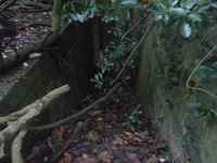 Tobrouk Bf.58c pour mitrailleuse. L'ouvrage est recouvert par la végétation et rempli de terre mais son état de conservation semble bon.