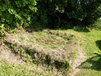 Les installations "légères" de lancement de V1 conservent parfois l'embase et les plots en béton qui permettaient de fixer la rampe de lancement en acier. Cet ouvrage est en grande partie recouvert par la terre et par l'herbe et il est impossible de s'assurer de son état général de conservation Les installations "légères" de lancement de V1 conservent parfois l'embase et les plots en béton qui permettaient de fixer la rampe de lancement en acier. Cet ouvrage est en grande partie recouvert par la terre et par l'herbe et il est impossible de s'assurer de son état général de conservation.
