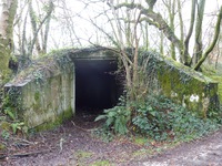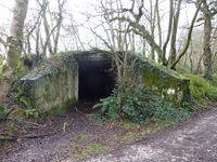 Les installations dites lourdes comportent invariablement un grand hangar de ce type appelé "garage droit" afin de les différencier de ceux appelés "garages en ski". Son entrée est souvent protégée par deux murs pare-éclats afin de protéger les V1 stockés à l'intérieur d'éventuels impacts (c'est le cas ici). Long d'une trentaine de mètres,on pouvait y remiser les "bombes volantes" à leur arrivée sur site et cela dans l'attente de leur assemblage final et leur lancement. L'ouvrage est dans un bon état de conservation général.