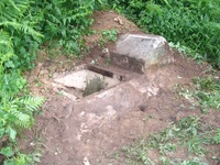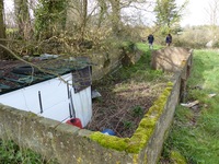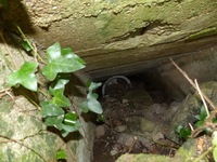 Pour ce que l'on peut en voir, cet élément n'est constitué que d'une sortie avec échelle métallique qui aurait permis d'évacuer les galeries souterraines présentes dans ce champ et aux alentours si leur entrée principale s'était trouvée obstruée. S'agit-il là aussi d'un abri en cas d'attaque aérienne ? Il est difficile d'apprécier si une pièce a été construite sous terre, mais cet accès n'a pas été réalisé pour rien. A noter que cette photo montre le E002 qui est le seul à être dégagé, ce qui permet de visualiser l'architecture de ces puits en tous points semblables. Celui du E003 est totalement recouvert par la végétation.