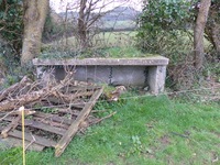 Cet abri ou niche construit dans le talus en bord de route pouvait servir pour le stockage du matériel ou pour des munitions. L'ouvrage est presque totalement détruit.