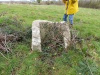 Pour ce que l'on peut en voir, cet élément n'est constitué que d'une sortie avec échelle métallique qui aurait permis d'évacuer les galeries souterraines présentes dans ce champ et aux alentours si leur entrée principale s'était trouvée obstruée. S'agit-il là aussi d'un abri en cas d'attaque aérienne ? Il est difficile d'apprécier si une pièce a été construite sous terre, mais cet accès n'a pas été réalisé pour rien. A noter que cette photo montre le E002 qui est le seul à être dégagé, ce qui permet de visualiser l'architecture de ces puits en tous points semblables. Celui du E003 est totalement recouvert par la végétation.