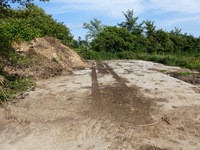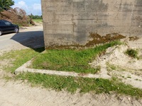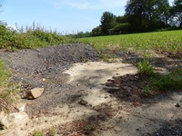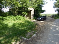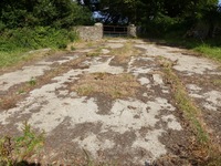 Les installations "légères" de lancement de V1 conservent parfois les plots en béton qui permettaient de fixer la rampe de lancement en acier. Cet ouvrage est en grande partie recouvert par la terre et par l'herbe et il est impossible de s'assurer de son état général de conservation.