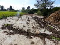 Les installations "légères" de lancement de V1 conservent parfois l'embase et les plots en béton qui permettaient de fixer la rampe de lancement en acier. Cet ouvrage est en grande partie recouvert par la terre et par l'herbe et il est impossible de s'assurer de son état général de conservation. Cependant, les susdits plots en béton ont été déplacés par les agriculteurs et disposés le long d'une haie. Ils ont été inventoriés à part.