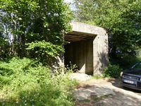 Garage en béton armé pouvant abriter un V1 sur son chariot. Cet ouvrage abandonné est dans un état général de conservation assez moyen.