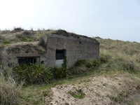 Abri léger construit en repli des ouvrages défensifs. Il est toujours juché sur la dune alors que la casemate et les Tobrouks gisent désormais sur la plage. Il s'agit d'une Sonderkonstruktion, autrement dit un ouvrage qui échappe à la standardisation et qui est construit en tenant compte de sa finalité et de la spécificité des lieux