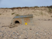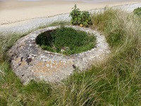 Tobrouk de type Bf.58c pour mitrailleuse. L'ouvrage semble en bon état général de conservation bien qu'il repose désormais sur le sable de la plage. L'érosion a en effet "mangé" la dune au fil des années. .