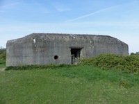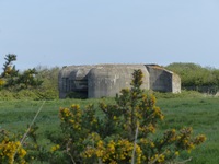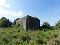 Casemate de tir de type Regelbau 671 pour 10,5 cm K.331(f). Bien qu'une visite de l'ouvrage se soit révélée impossible, il semble en bon état général de conservation.